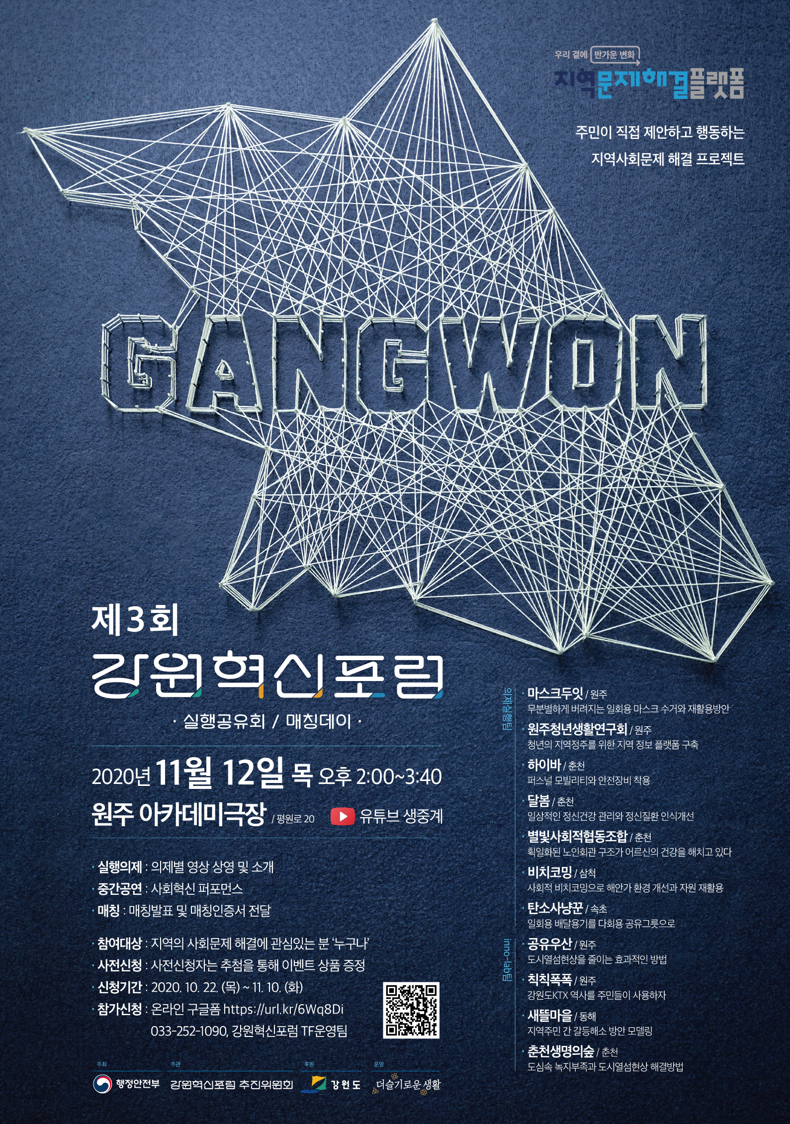 - 전화신청 : 033-252-1090, 강원혁신포럼 TF운영팀