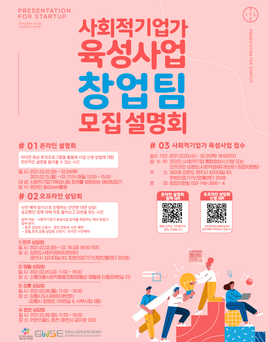 [창업지원팀] 2021년 사회적기업가 육성사업 창업팀 모집 설명회 안내 > 강원사경센터 공지 | 강원도사회적경제지원센터 (gwse.or.kr)