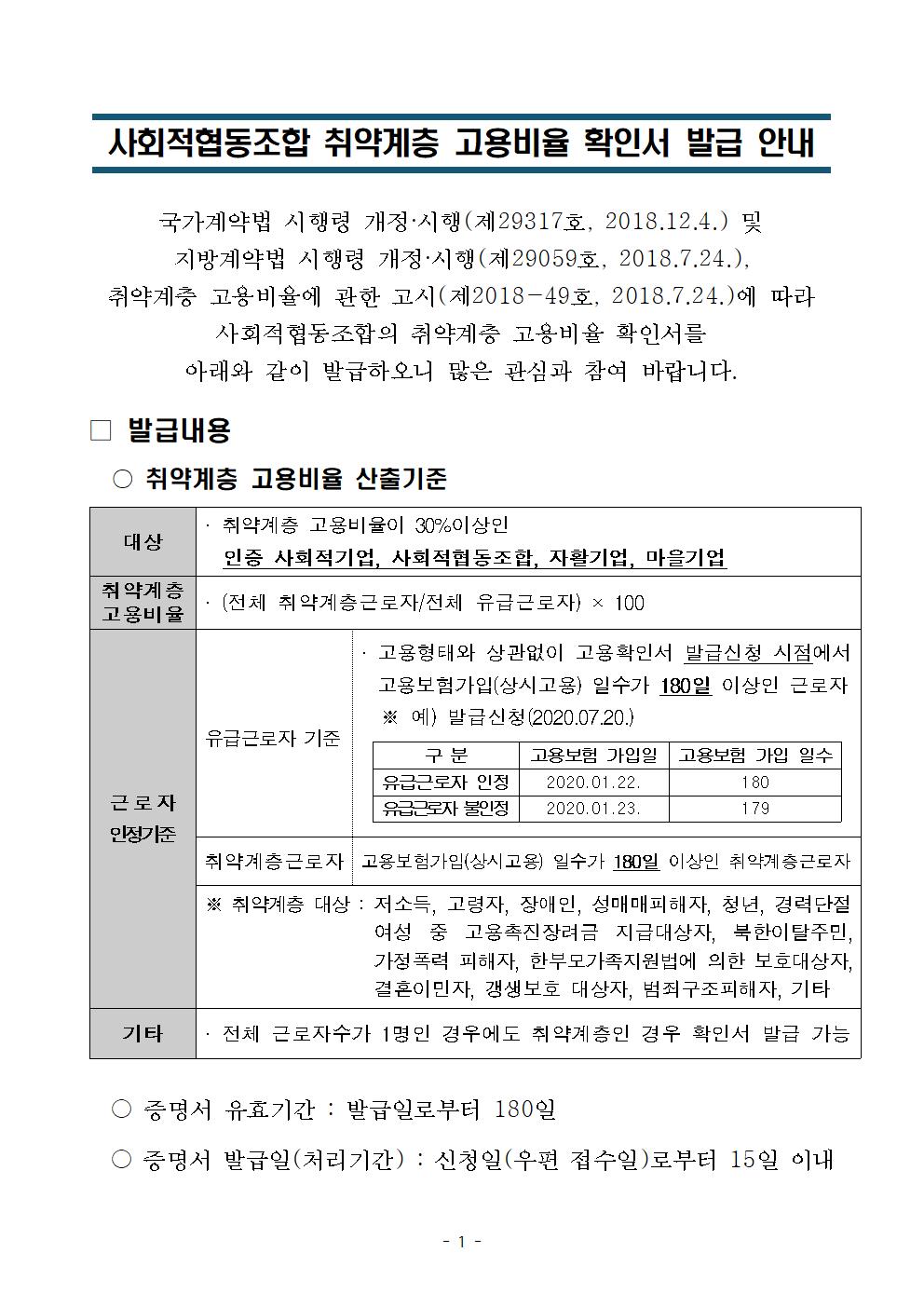그 외 사회적협동조합, 마을기업 등은 취약계층고용비율 확인서를 발급받아야 수의계약이 가능합니다.