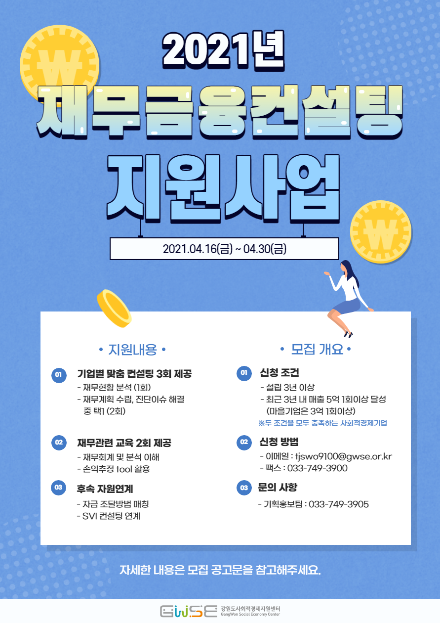 [기획홍보팀] 2021년 「재무금융 컨설팅 지원사업」 모집공고 > 강원사경센터 공지 | 강원도사회