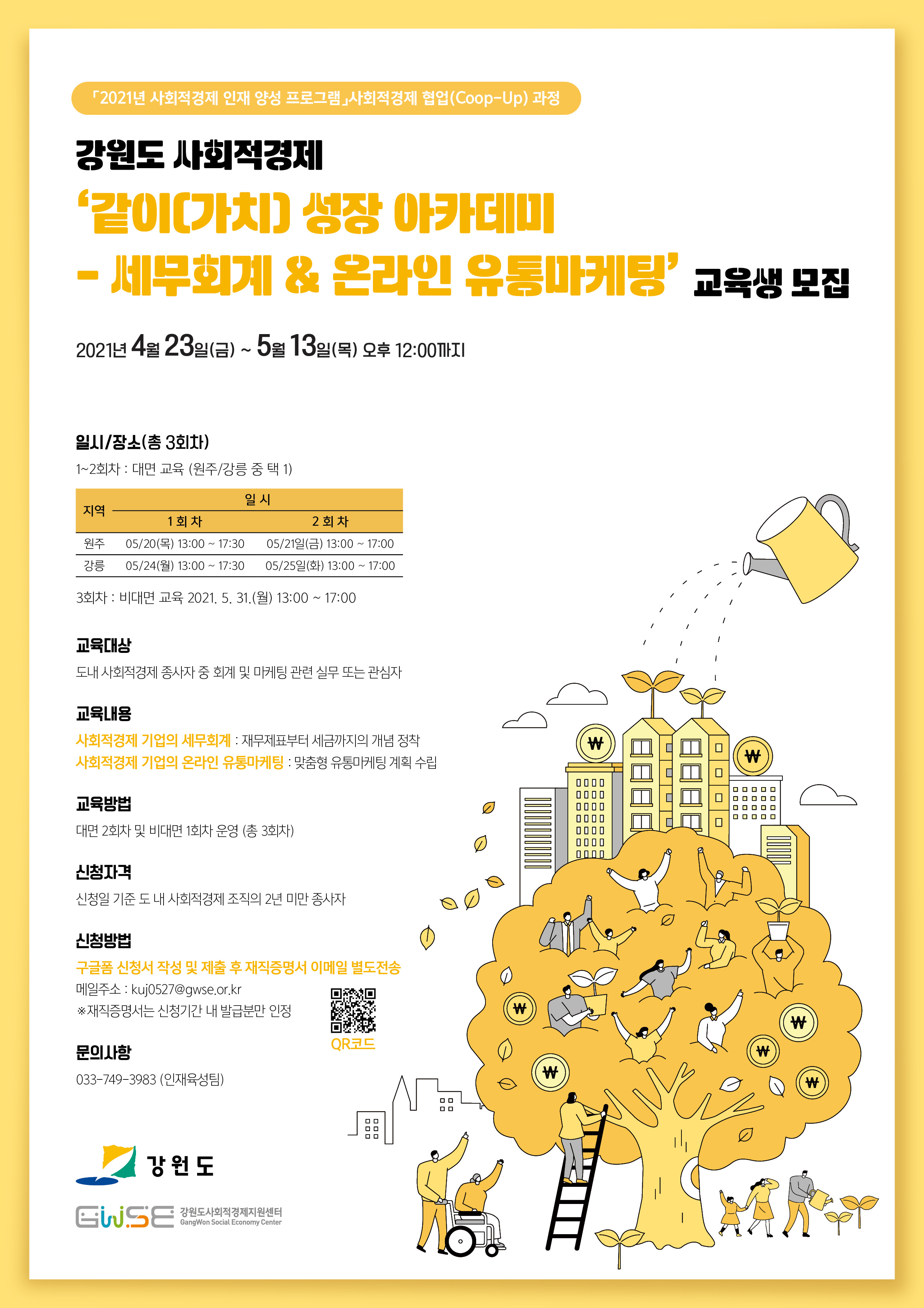 ○ 문 의 처 : (사)강원도사회적경제지원센터 인재육성팀 033)749-3983