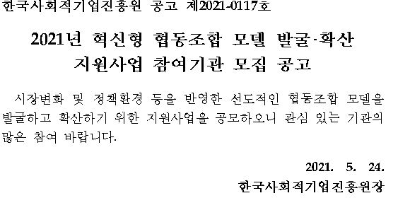 [붙임] 2021년 혁신형 협동조합 모델 발굴 및 확산 지원사업 공고문(최종).hwp