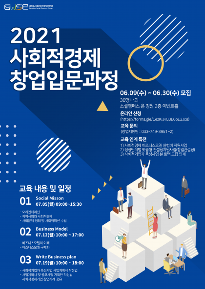 [창업지원팀] 2021년 사회적경제 창업입문과정 수강생 모집 공고 > 강원사경센터 공지 | 강원도사