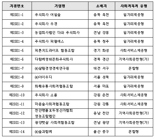 2021년도 상반기 농업농촌형 예비사회적기업 모집 공고 (0) | 2021.06.23 |