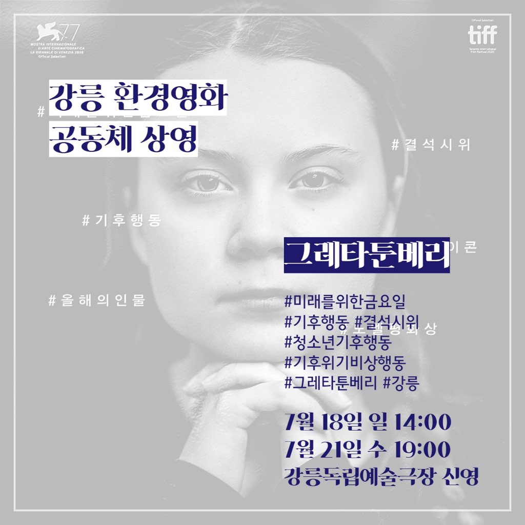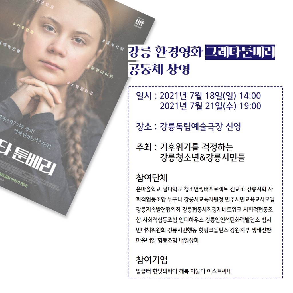 강릉협동사회경제네트워크사회적협동조합 조합원모임 『영화 '그레타툰베리'』 상영회 참여 조합원 모집 안내