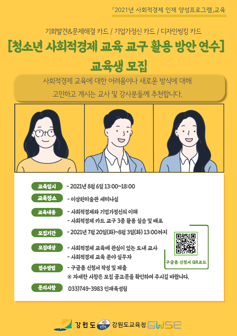 [인재육성팀] '청소년 사회적경제 교육 교구 활용 방안 연수' 교육생 모집 > 강원사경센터 공지 |
