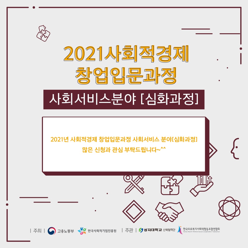 <2021년도 사회적경제 사회서비스 분야 창업입문과정(심화) 과정 교육생을 모집합니다>