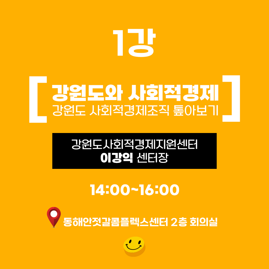 | [안내] 강원도사회적경제지원센터 | 하반기 ‘사회적경제 열기(熱氣, Open)’ 교육생 모집 공고 (0) | 2021.09.23 |