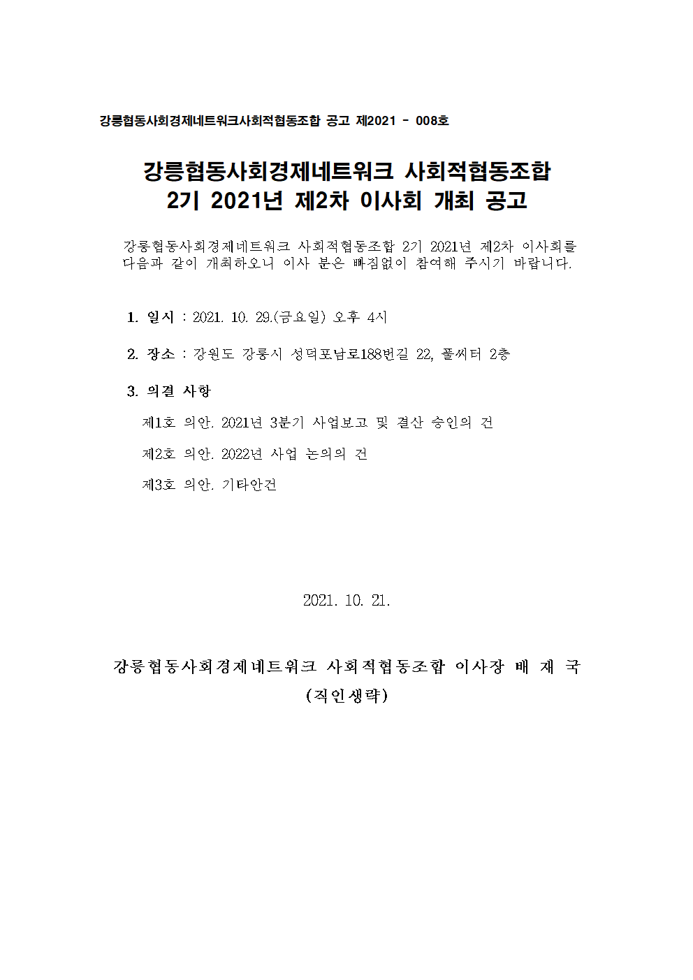 | 강릉협동사회경제네트워크사회적협동조합 라이브러리 현황 (0) | 2021.08.10 |