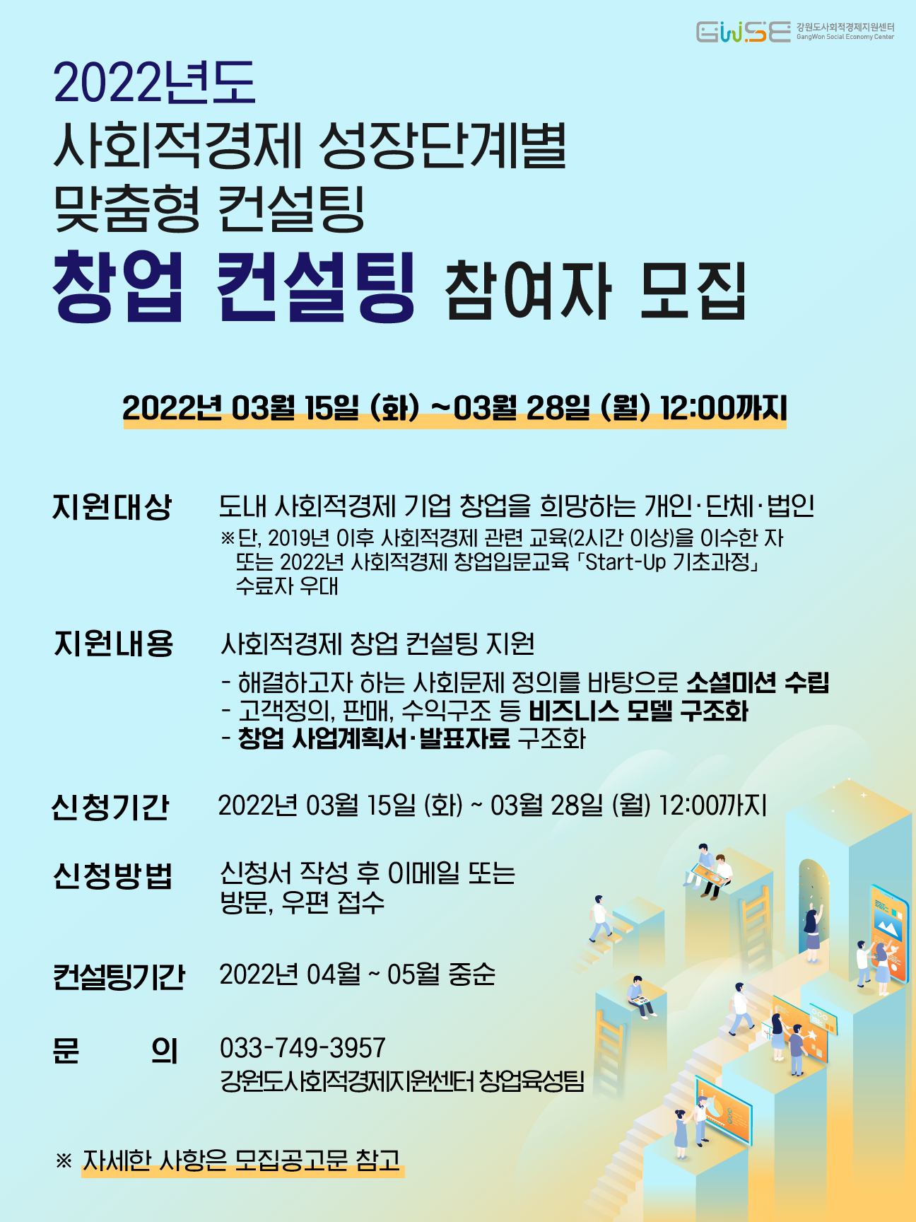 [창업육성팀] 「2022년도 사회적경제 성장단계별 맞춤형 컨설팅」 창업컨설팅 참여자 모집 공고 >
