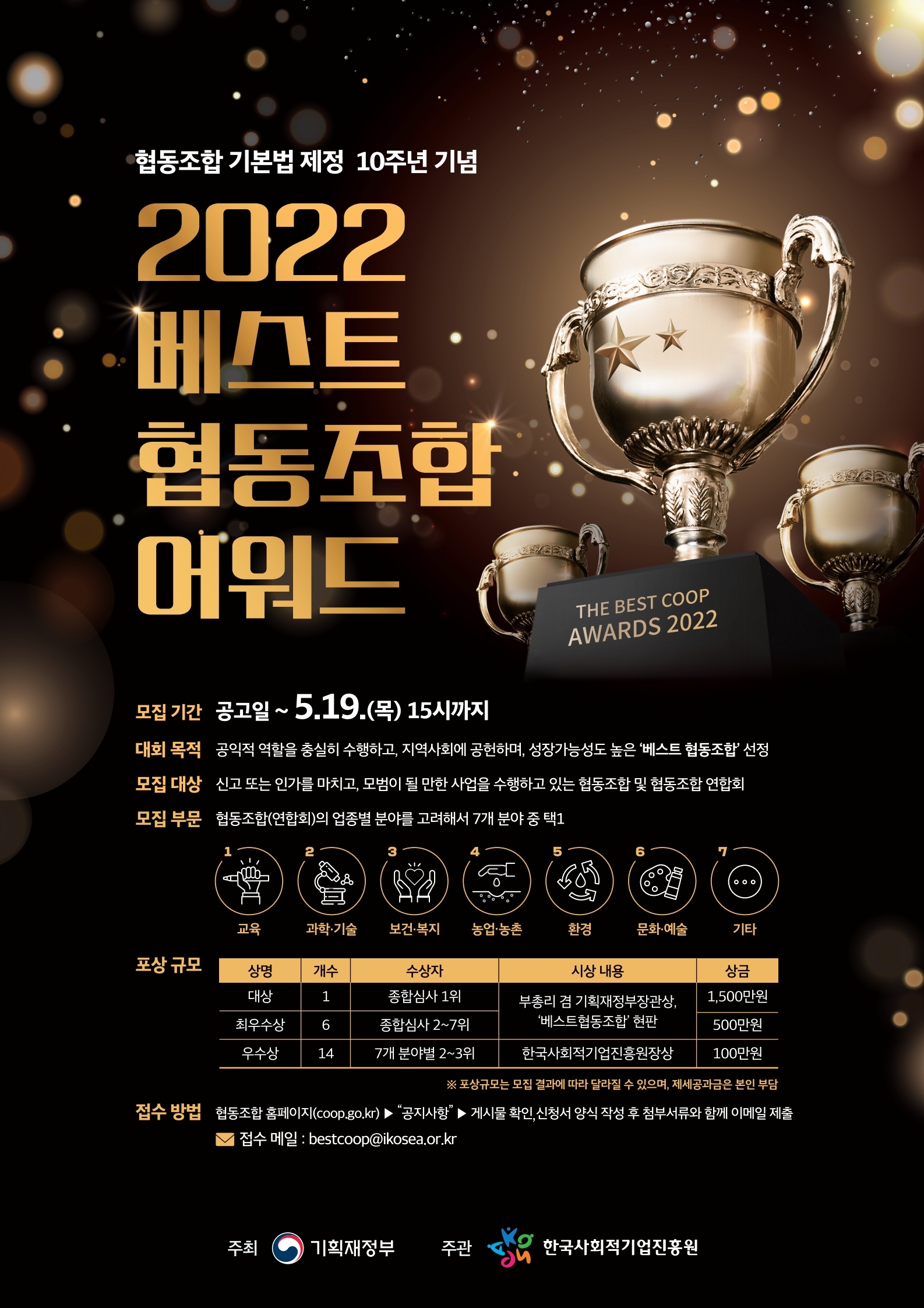 협동조합 기본법 10주년 기념 "2022 베스트 협동조합 어워드” 공고