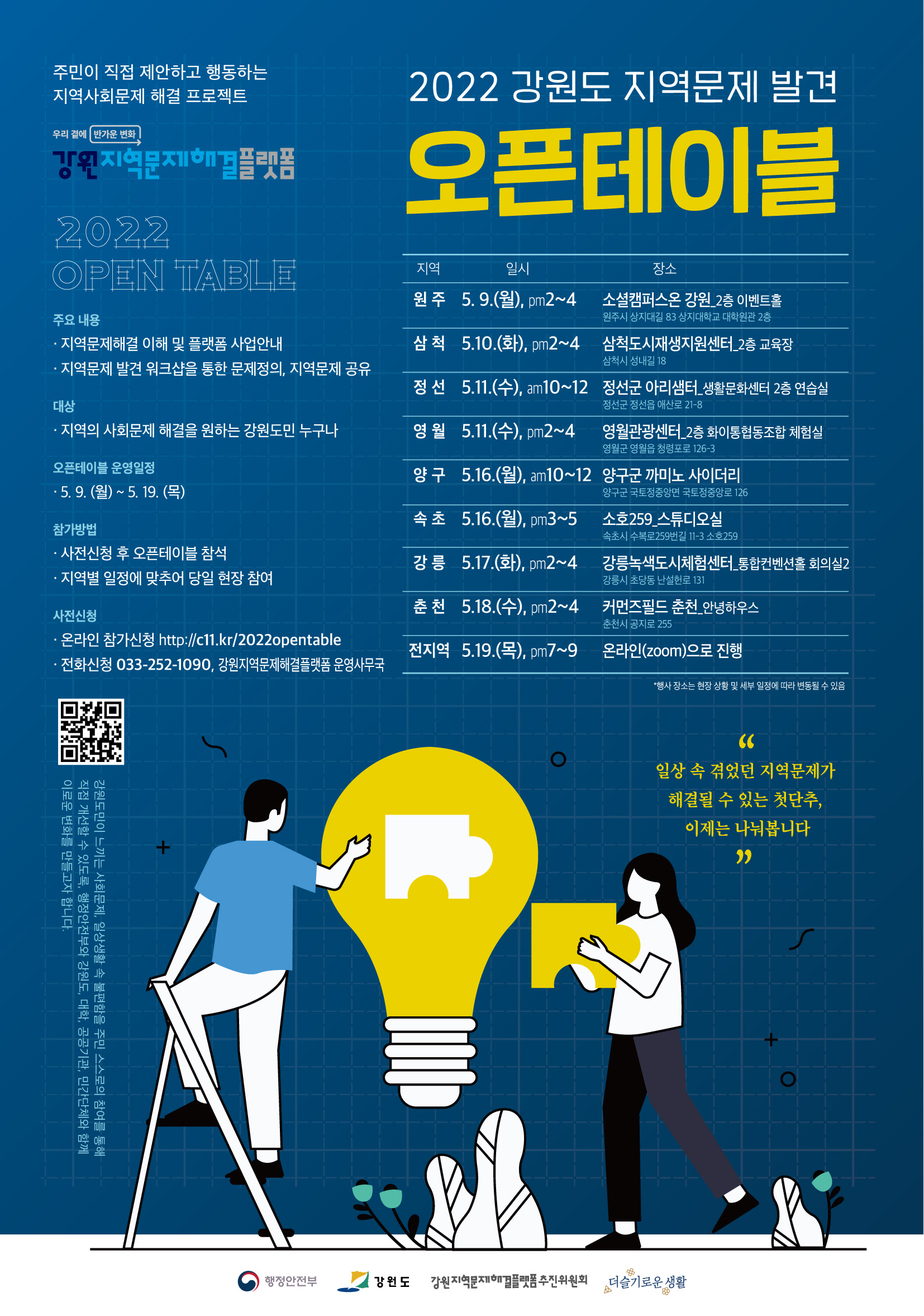 강원 지역별 일정이 다르니 포스터와 장소를 꼭 참고하시어 오픈테이블에 참석해주세요!