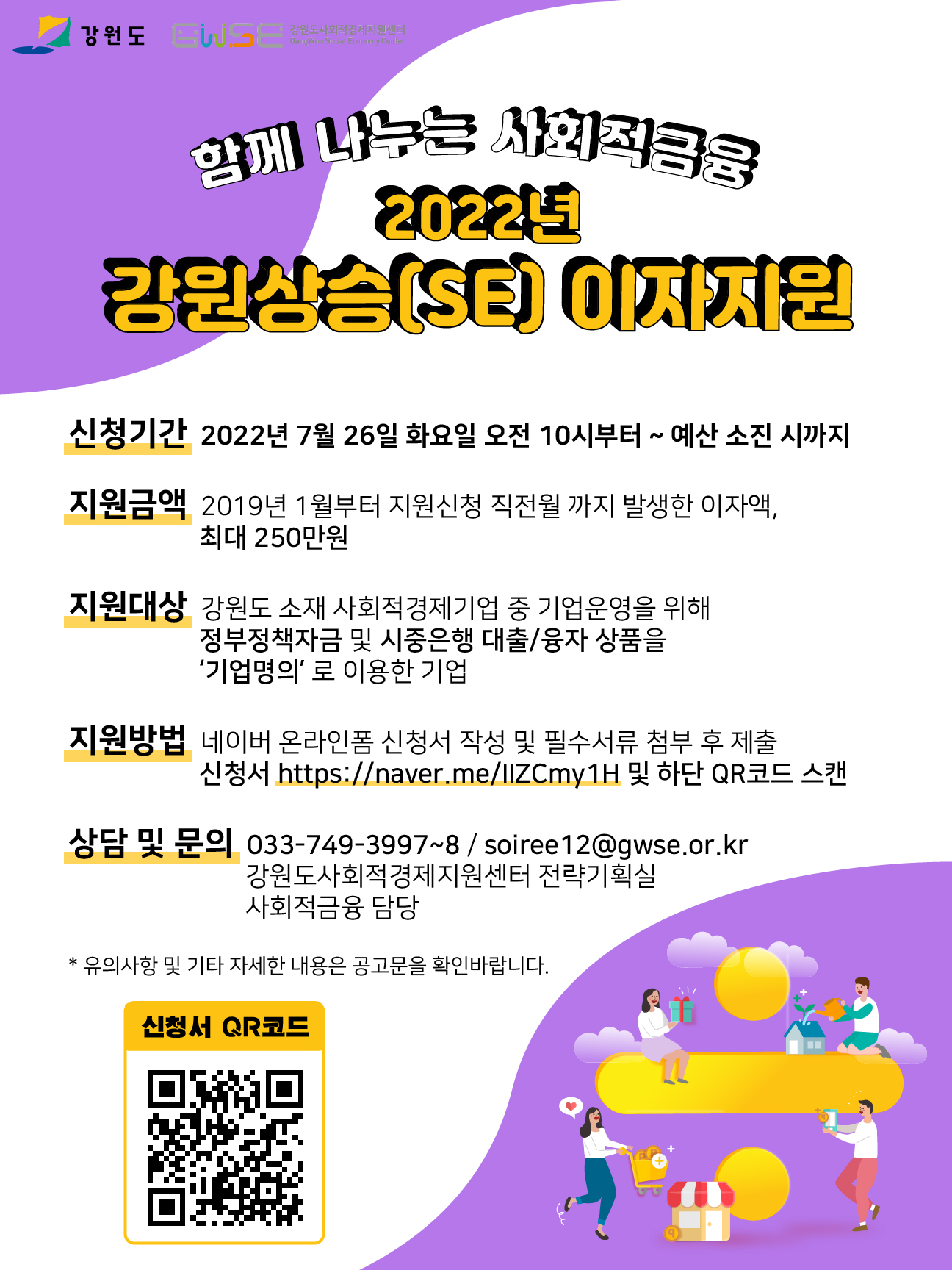 [전략기획실] 2022년 「강원상승(SE) 이자지원」모집공고 > 강원사경센터 공지 | 강원도사회적경제