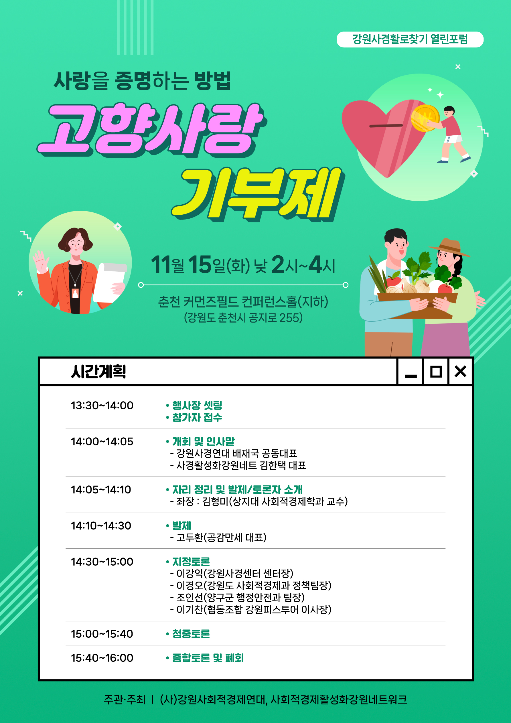 | [안내] 강원도사회적경제지원센터 | 협동조합 이해 교육 모집 안내 (10월 18일) (0) | 2022.10.11 |