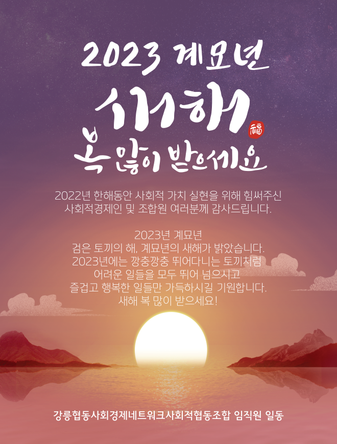 | "강릉협동사회경제네트워크 송년의 밤(12/15)"에 조합원 여러분을 초대합니다. (0) | 2022.11.25 |