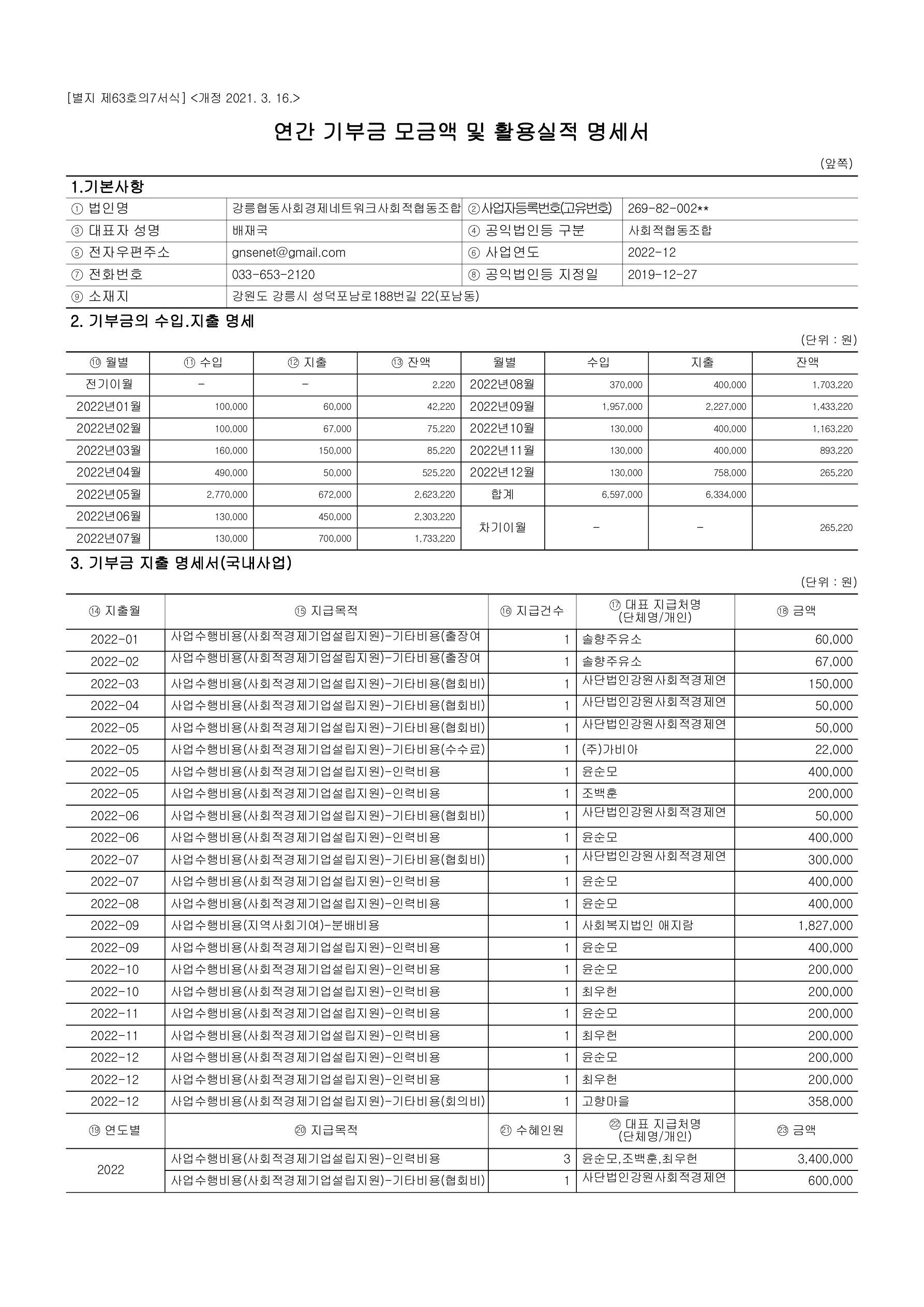 | [공시] 강릉협동사회경제네트워크사회적협동조합 2022년 상반기 재무상태 공시 (0) | 2022.07.04 |
