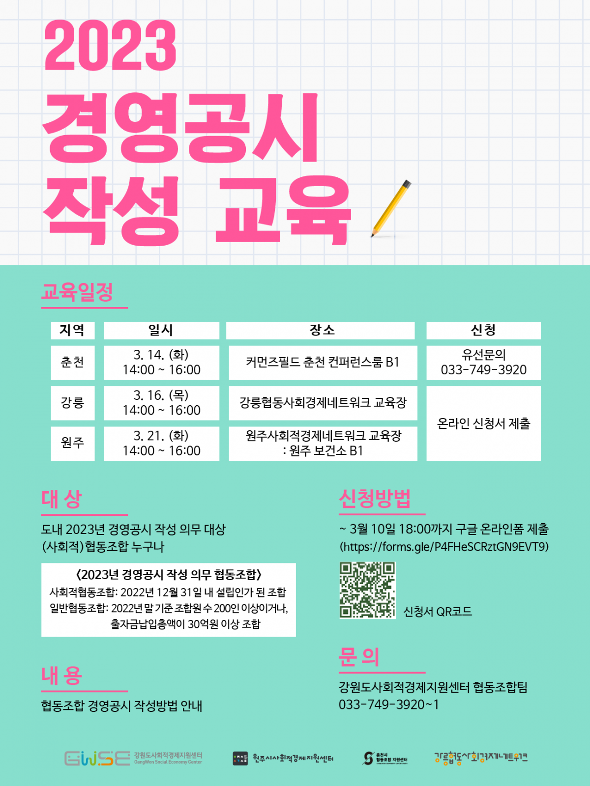 | 강릉협동사회경제네트워크 사회적협동조합 임원 선출 공고 (0) | 2023.03.06 |