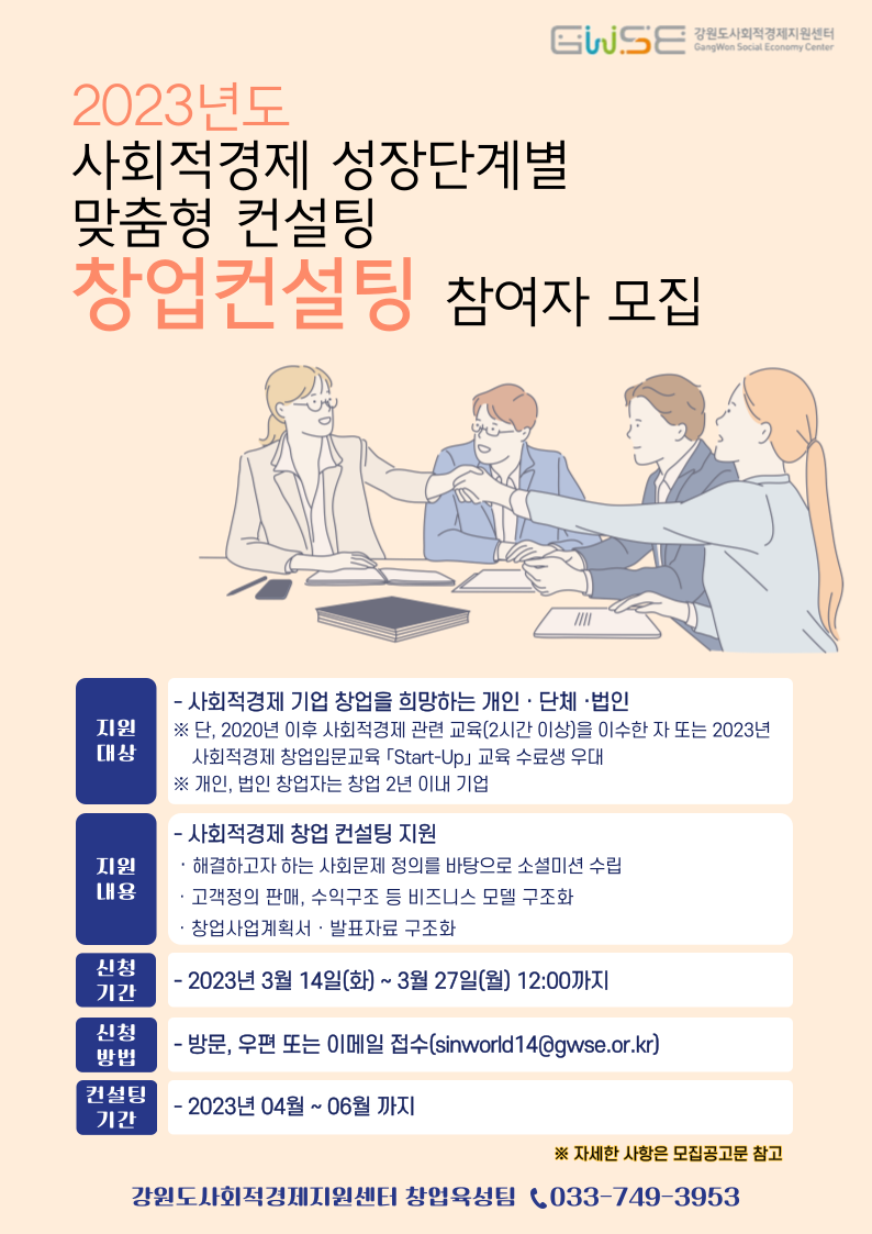 ○ 사 업 명 :「2023년도 사회적경제 성장단계별 맞춤형 컨설팅」창업컨설팅
