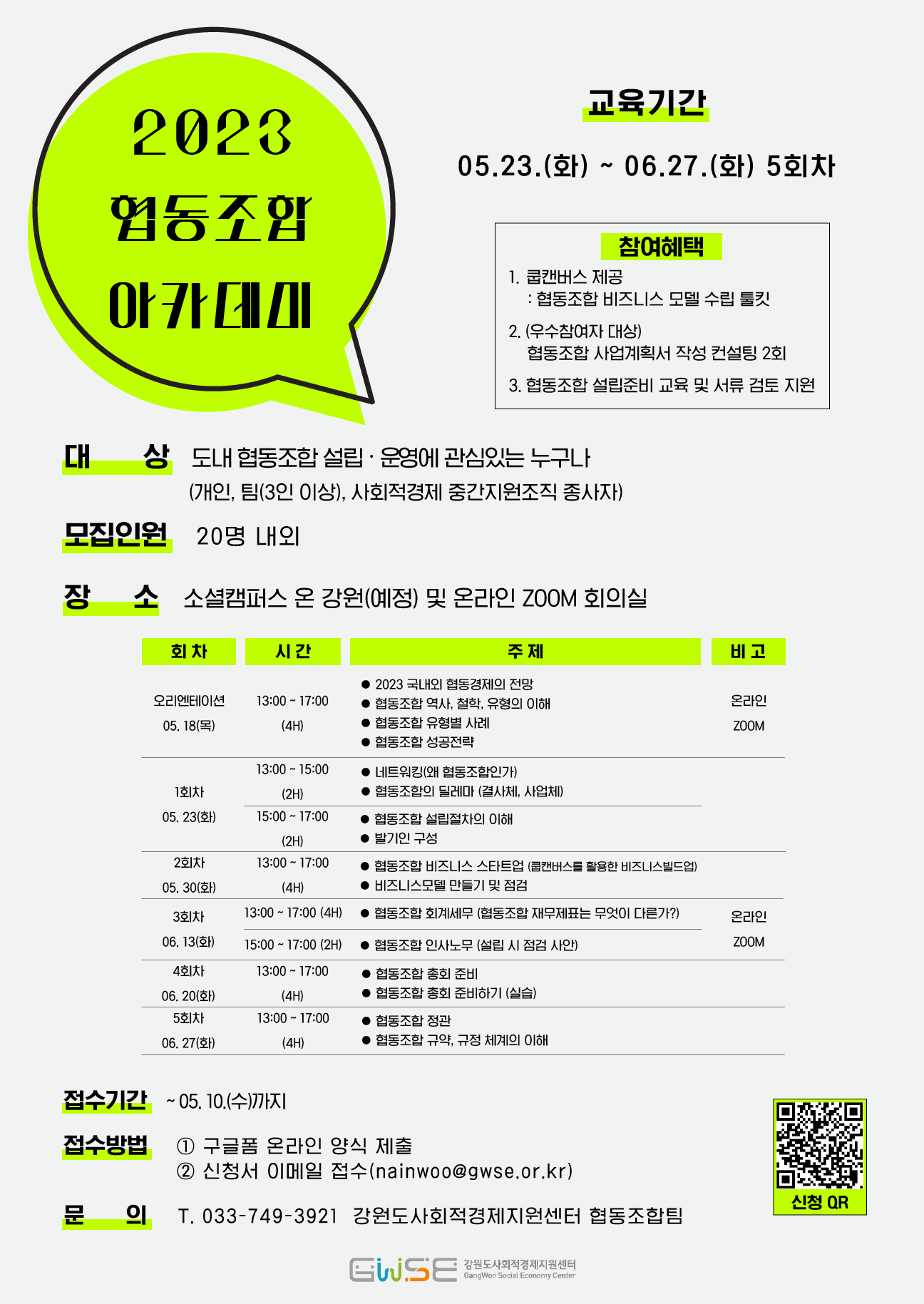 ○ 문의 : 강원도사회적경제지원센터 협동조합팀 T. 033-749-3921