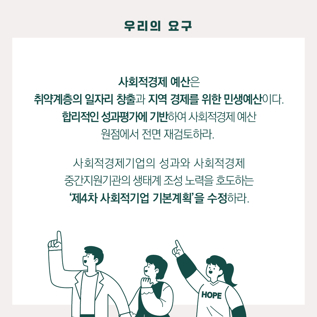 | 멈춰라! 사회적경제예산 60% 삭감. 이행하라! UN사회연대경제 결의안 (0) | 2023.09.12 |