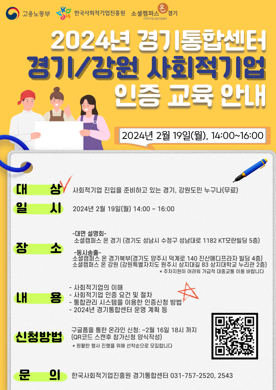2024년 사회적기업 인증 설명회(경기/강원)(2.19.(월) 14시, 소셜캠퍼스온 경기(성남))