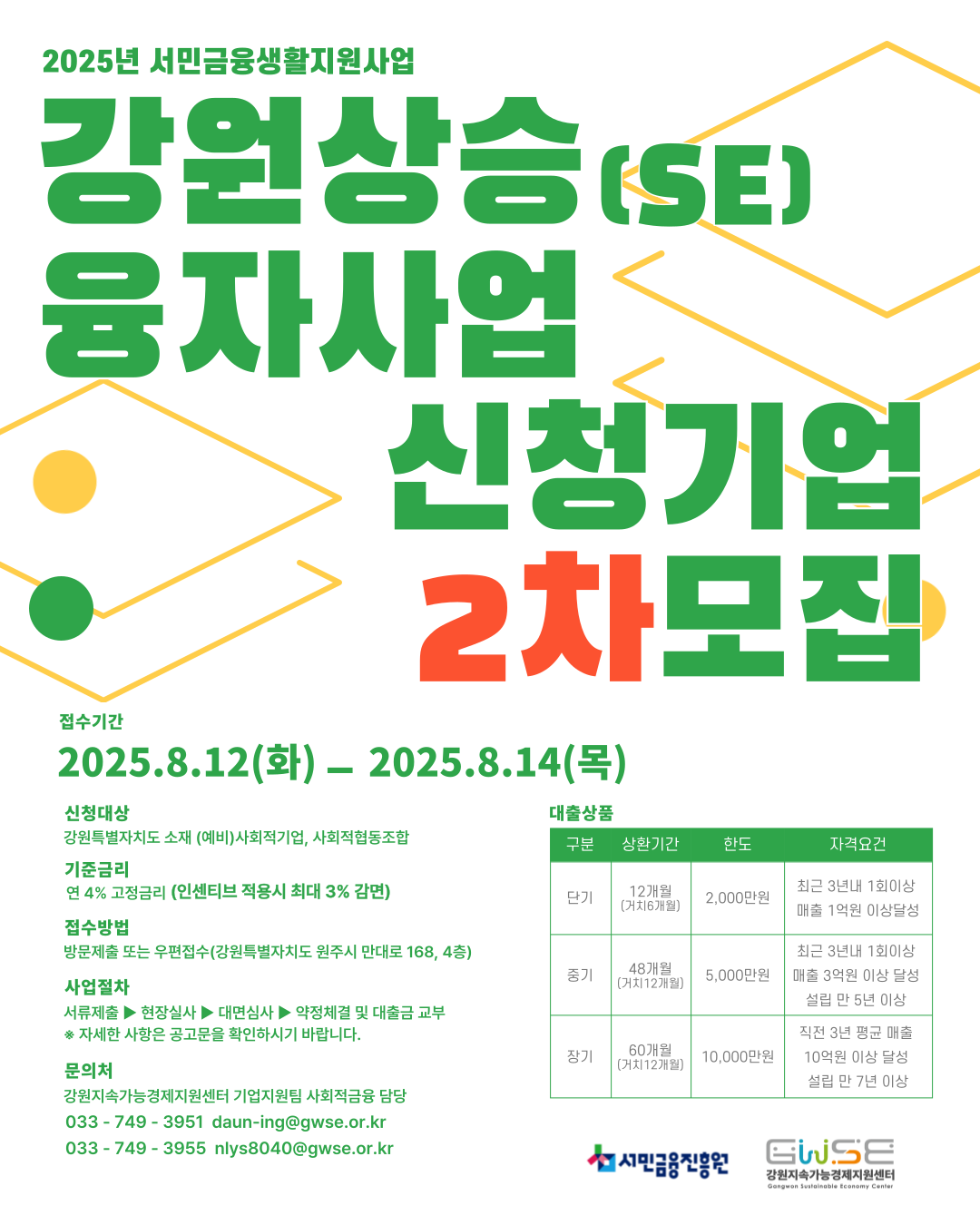 ○ 사 업 명: 2025년 서민금융생활지원사업 「강원상승(SE) 융자사업」