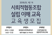 [도센터공지] 제1차 사회적협동조합 설립 이해 교육』교육생 모집 공고 (0) | 2018.02.10 |