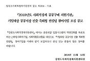 [공고]강원도사회적경제지원센터 | 기업대상 공공시장 진출 특화형 컨설팅 참여기업 모집 공고 (0) | 2018.11.15 |
