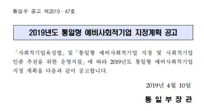| 2019년도 부처형 예비사회적기업 공고 일정 안내 (0) | 2019.04.12 |