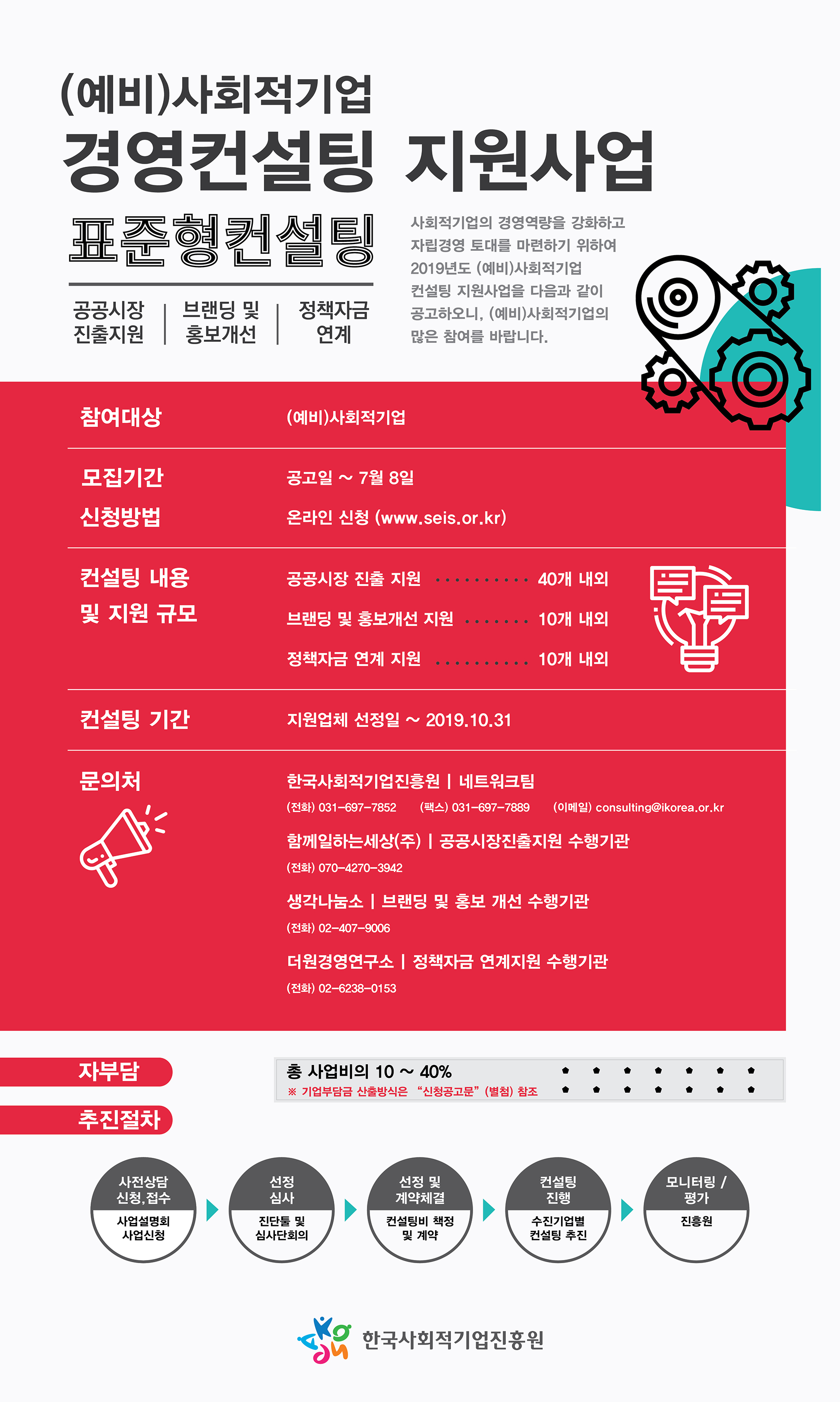 [공고] 한국사회적기업진흥원 | 2019 혁신형 협동조합 모델 발굴·확산 지원사업 모집 공고 (0) | 2019.06.28 |
