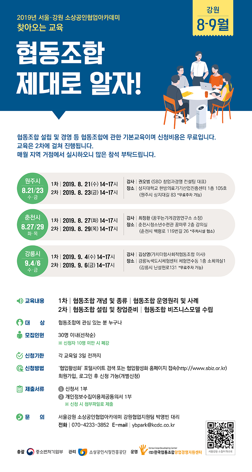 | [공지] 강원도사회적경제지원센터 | 세무회계 프로그램(CU-bizcoop) 교육 모집 (0) | 2019.08.07 |