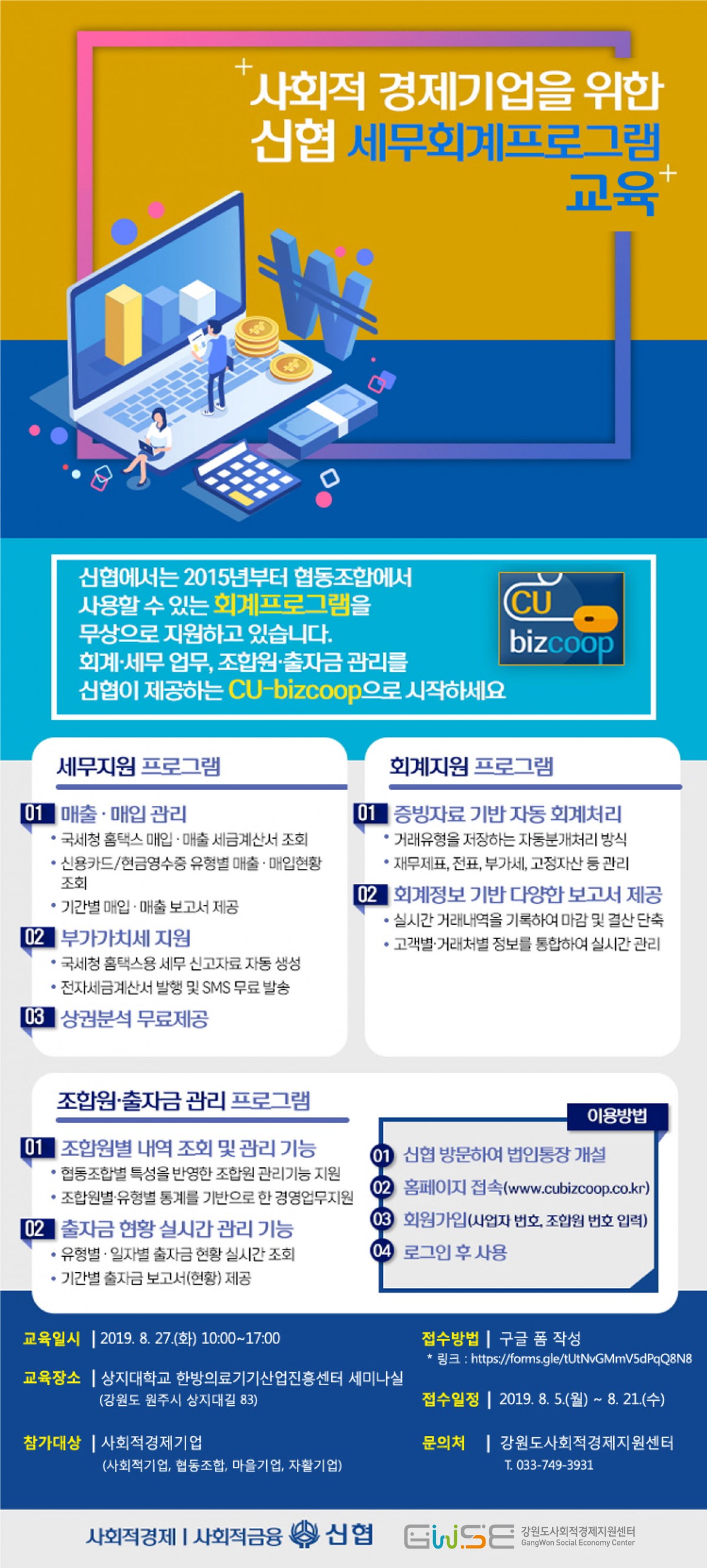 세무회계 프로그램(CU-bizcoop) 교육 모집 > 공지사항 | 강원도사회적경제지원센터