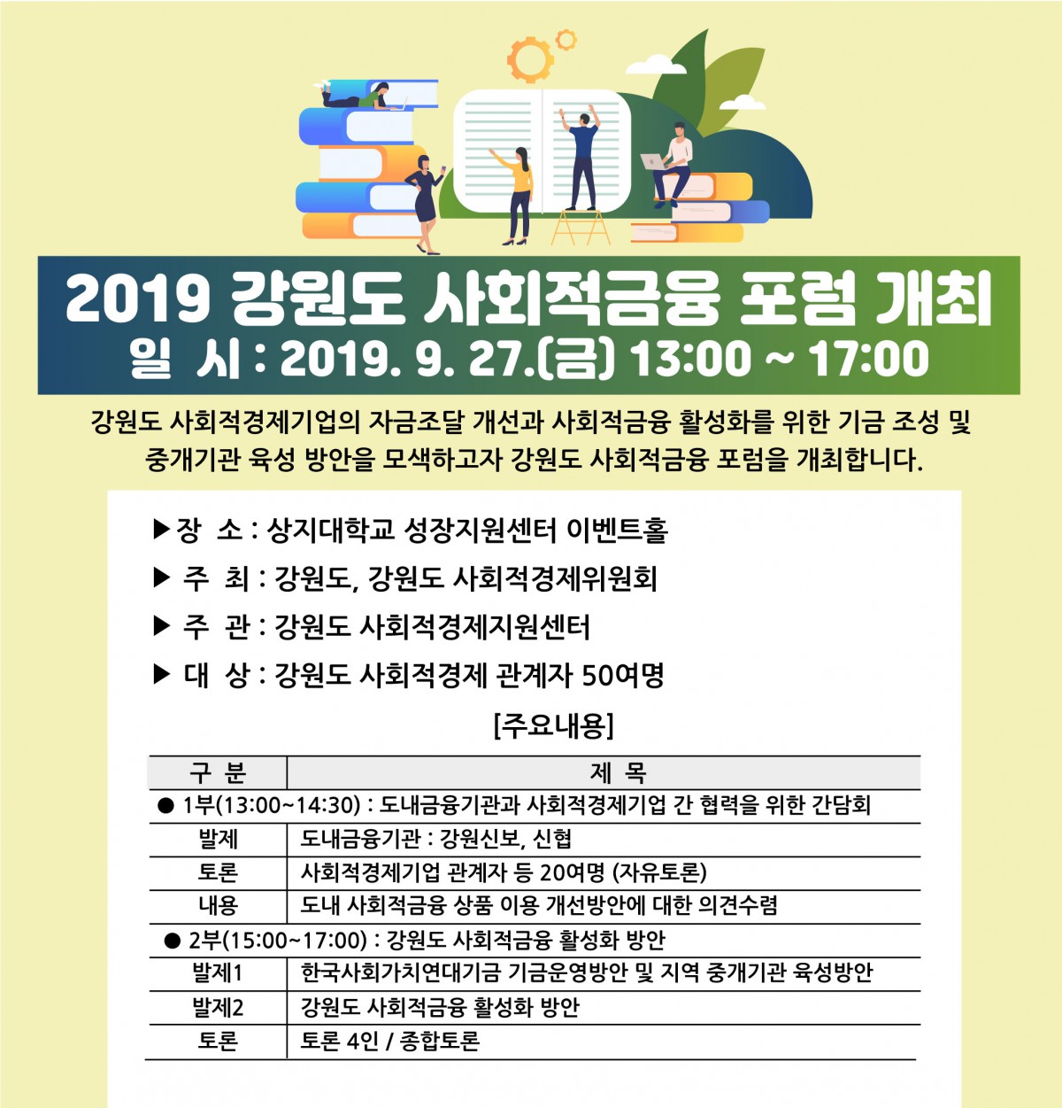 [2019 강원도 사회적금융 포럼 개최] 안내 > 공지사항 | 강원도사회적경제지원센터
