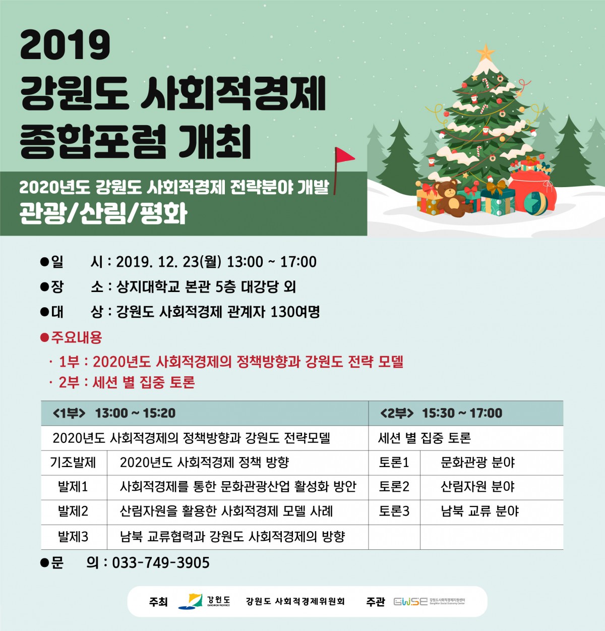 강원도사회적경제지원센터에서 강원도 사회적경제 종합 포럼을 개최하고자 하오니 많은 참석 부탁드립니다.