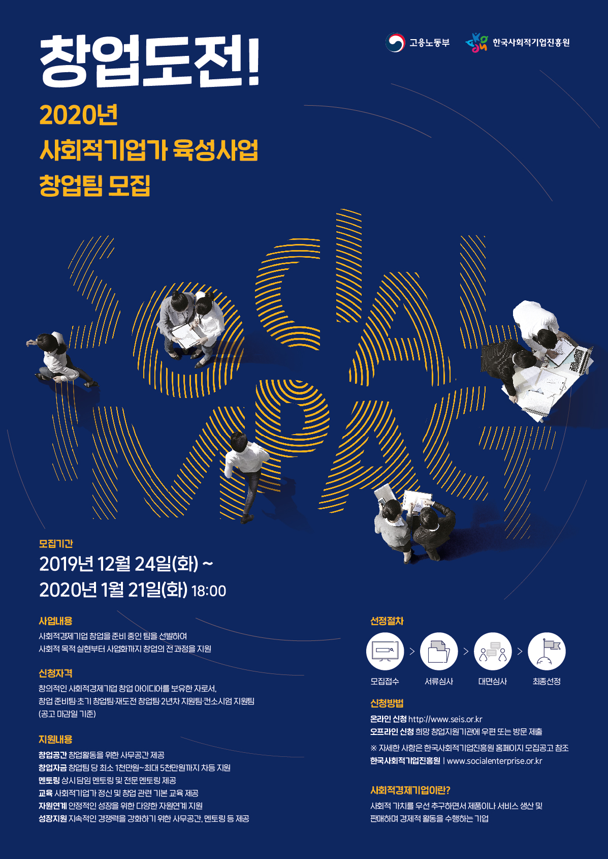 2020년도 사회적기업가 육성사업 창업팀 모집 공고