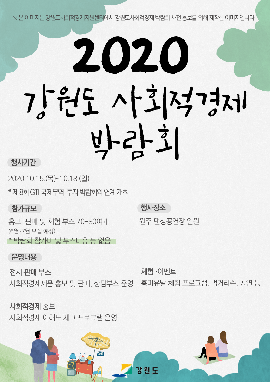 [강원도청] 2020 강원도 사회적경제 박람회 개최 안내 > 공지사항 | 2020년 사회적경제혁신성장사업