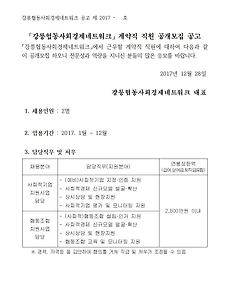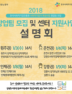 열린알림방669 [고용노동부 공고] 2018년 사회적기업 인증 계획 및 심사 기준 공고 고용노동부 공고 제2018 - 17호 2018년 사회적기업 인증 계획 및 심사기준 공고 『사회적기업육성법』제7조, 제8조 및 동법 시행규칙 제12조에 따라 2018년 사회적기업 인증 계획 및 심사기준’을 다음과 같이 공고합니다. 2018. 1. 5. 고용노동부 장관 2018. 1. 8. [안내] 2018년 사회적기업가 육성사업 창업지원기관별 사업설명회 일정 2018. 1. 2. [공고] 2017년 제6차 사회적기업 인증 공고 고용노동부 공고 제2017 - 473호 2017년 제6차 사회적기업 인증 공고 사회적기업육성법 제7조 및 동법 제8조와 고용정책기본법 제10조에 따라 사회적기업육성전문위원회('17.12.27.)의 심의를 거친 아래의 24개 기관을 2017년도 제6차 사회적기업으로 인증하였기에 이를 공고합니다. 2017. 12. 29.고용노동부 장관 2017. 12. 31. 삼가 고인의 명복을 빕니다. 강릉 시민운동 1세대, 故김재관 대표님이 돌아가신지 1년이 지났습니다. 함께 모여 고인을 추모하는 자리를 가지려고 합니다. 참석해 주시면 감사하겠습니다. 일시 : 2018.1.2(화) 11시 장소 : 강릉청솔공원 영생의집 내용 : 영생의 집에 모여 추모후 신년회 겸 점심식사를 진행하고자 합니다. 삼가 고인의 명복을 빕니다. 2017. 12. 29. [도센터공지] 사회적기업가 육성사업 창업팀 모집 및 도센터 지원사업 설명회 2017. 12. 28. 새해 복 많이 받으세요. 2017. 12. 28. [채용] 강릉협동사회경제네트워크 계약직 직원 공개모집 공고(수정) 2017. 12. 28. [공고] 2018년도 사회적기업가 육성사업 창업팀 모집 공고 및 사업설명회 한국사회적기업진흥원 공고 제2017-169호 2018년도 사회적기업가 육성사업 창업팀 모집 공고 혁신적인 아이디어를 가지고 사회문제를 해결하는 '예비 사회적기업가'의 창업활동을 지원하기 위한 2018년도 사회적기업가 육성사업의 창업팀을 다음과 같이 모집하오니, 많은 참여 바랍니다. 2017년 12월 22일 한국사회적기업진흥원장 *자세한 사항은 공고문 참조 **창업지원기관 역량현황표는 추후 게시 예정 자세한 사항은 강원도사회적경제지원센터 창업지원팀 (033)749-3950~2 으로 연락바랍니다. 사회적기업가 육성사업 사업설명회 개최 안내 일시 : 2018년 1월 9일(화) 오후 2시 장소 : 강릉 풀씨터 2층 살롱드슬슬 (강원도 강릉시 성덕포남로188번길 22) 2017. 12. 22. 외부기관공지 | [열매나눔재단] 한전 사회적경제조직 해외판로 지원사업 한국전력과 열매나눔재단은 해외판로개척을 희망하는 사회적경제조직에 자금과 컨설팅을 지원하고자 합니다. 세계를 향해 뻗어나갈 사회적경제조직의 많은 관심과 참여를 부탁드립니다. 해외진출 경험이 없거나 당장 전시회 등에 참가할 계획이 없는 조직이더라도 영문카탈로그, 영문홈페이지 등의 해외마케팅 자료를 제작하거나 해외 시장조사 비용에도 자금을 사용하실 수 있습니다. (심사에 따라 각 최대 300만원/500만원) 특히 전남, 광주 지역의 사회적경제조직 10개소를 우선 선발할 예정이오니 많은 관심 부탁드립니다. 모집공고 링크는 아래와 같습니다. http://bit.ly/2zth8IV 2017. 12. 6. 도지원센터 | 사회적경제와 지속가능발전목표(SDGs) 포럼 개최 지속가능발전목표(SDGs)는 2015.9 유엔환경개발회의(UNCED)에서 193개국 대표의 인준으로 채택된 ‘세계의 변혁’을 위한 2030년까지의 ‘글로벌개발목표’이자, ‘인간, 지구 및 번영을 위한 행동계획’입니다. ‘사회적경제’는 자본주의 시장 경제가 발전하면서 나타난 불평등과 빈부격차, 환경파괴 등 다양한 사회문제에 대한 대안으로 등장했고, 이윤의 극대화가 최고의 가치인 시장경제와 달리 사람의 가치를 우위에 두는 경제활동을 말합니다. 사회적경제는 협력과 호혜를 바탕으로 삶의 질 증진, 빈곤퇴치, 소외극복, 생태계보호 등 사회적가치를 적극 실현합니다. 경제영역은 사회, 환경과 더불어 지속가능발전의 주요 영역이고, 협력과 호혜를 바탕으로 하는 사회적경제는 지속가능발전과 상생관계에 놓여 있.. 2017. 12. 6. 2017년 3차 강원도형 예비사회적기업 지정 공고 2017. 12. 2. 외부기관공지 | [함께일하는재단] 한전 사회적경제조직 크라우드펀딩 지원사업 (~12/25) (재)함께일하는재단에서는 '한전 사회적경제조직 크라우드펀딩 지원사업'을 통해 사회적경제조직의 대국민 인식 확산 및 공감대 형성의 목적을 이루고자 합니다. 제품의 홍보, 판매, 생산비용 조달의 기회를 필요로 하는 성장기 사회적경제조직을 모집하오니, 많은 관심 부탁드립니다. 2017. 11. 29. 도지원센터 | 지역사회 노인통합돌봄서비스 구축 토론회 개최 알림 강원도사회적경제지원센터는 강원도 사회적경제 노인통합 돌봄 사업을 추진하고자 「지역사회기반 노인통합돌봄서비스 지원체계」구축을 위한 토론회를 개최합니다. ◌ 일 시 :‘17. 12. 5(화), 14:00 ◌ 장 소 : 한림대학교 국제회의실(한림대 정문 바로 오른쪽) ◌ 대 상 : 노인돌봄 관련 공무원, 유관기관, 사회적경제조직 등 ◌ 내 용 : 지역사회기반 노인통합돌봄 서비스 지원체계 구축을 위한 토론회 도내 관계자 분들의 많은 참석 및 홍보 부탁드립니다. (별도의 참가신청은 없습니다.) 2017. 11. 27. 타기관공지 | [동그라미재단] 