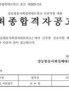분류 전체보기1496 2018년 정기총회 공지 안녕하세요. 강릉협동사회경제네트워크 입니다. 강릉협동사회경제네트워크 정관 제18조(총회개최와 운영) 1항에 따라 2018년도 정기총회를 다음과 같이 소집합니다. 바쁘시더라도 정기총회에 꼭 참석하시어 회원들과 함께 2017년도 사업성과를 공유하고 2018년도 계획을 나눌 수 있기를 바랍니다. - 다 음 - 일시 : 2018년 2월 28일(수) 오후 4시 장소 : 살롱드 슬슬(강원도 강릉시 성덕포남로 188번길 22, 2층) 주요안건 제1호 의안 : 2017년도 감사보고의 건 제2호 의안 : 2017년도 사업보고 및 회계결산 승인 제3호 의안 : 2018년도 사업계획 및 예산(안) 심의 및 의결의 건 제4호 의안 : 임원선출의 건 제5호 의안 : 기타 안건 부득이 총회에 참석하지 못하는 회원은 2월 23일(.. 2018. 2. 13. [공고] 2018년 고용노동부 예비사회적기업 지정계획 공고 고용노동부 공고 제2018 -75호 2018년 고용노동부 예비사회적기업 지정계획 공고 우리 사회의 다양하고 혁신적인 사회적기업을 육성하기 위한 고용노동부 예비사회적기업 지정계획을 다음과 같이 공고합니다. 2018. 2. 9 고용노동부 장관 2018. 2. 10. [도센터공지] 제1차 사회적협동조합 설립 이해 교육』교육생 모집 공고 강원도사회적경제지원센터 공고 제2018 - 004호 「2018년도 강원도 협동조합 지원기관」 제1차 사회적협동조합 설립 이해 교육』교육생 모집 공고 『강원도 사회적경제지원센터』에서는 사회적협동조합 설립희망자를 대상으로 『제1차 사회적협동조합의 이해와 설립절차』교육을 아래와 같이 실시하오니 관심 있는 분들의 많은 참여를 바랍니다. 2018년 2월 8일 강원도사회적경제지원센터장 2018. 2. 10. [타기관공지] 2018년도 (예비)사회적기업 자율형 컨설팅 신청 공고 2018년도 (예비)사회적기업 자율형 컨설팅 신청 공고 한국사회적기업진흥원 공고 제2018 - 016호 사회적기업의 경영역량을 강화하고 자립경영 토대를 마련하기 위하여 「2018년도 (예비)사회적기업 컨설팅 지원사업」을 다음과 같이 공고하오니, (예비)사회적기업의 많은 참여를 바랍니다. 2018. 2. 9.한국사회적기업진흥원장 2018. 2. 9. [타기관공지] 사회적기업 상품경쟁력 강화 지원사업 참여 기업 모집 2018. 2. 9. [강원도 공고] 강원도 사회적경제 기술기반형기업 공모계획 공고(기간연장) 강원도 공고 제2018-174호 강원도 사회적경제 기술기반형기업 공모계획 공고[기간연장] 강원도에서는 사회적경제기업의 제품 개발 및 기술 고도화를 지원하여 기업의 시장경쟁력을 제고하고 강원도 대표기업으로 육성하기 위한 「사회적경제 기술기반형기업」공모계획을 다음과 같이 공고하오니 많은 참여 바랍니다. 2018년 2월 6일 강 원 도 지 사 2018. 2. 6. 2018년 사회적 가치 지표SVI 활용 매뉴얼 (svi-2.0) 2018. 2. 4. 취약계층 판단기준(2018) 2018년 사회적기업 인증 업무지침 '취약계층의 판단기준'을 첨부합니다. 2018. 2. 3. [강원도공고] 2018년 제1차 (예비)사회적기업 재정지원사업 등 사업계획 공고 강원도 공고 제2018-145 2018년도 제1차 (예비)사회적기업 재정지원사업 등 사업계획 공고 강원도 사회적경제 육성 지원에 관한 조례 및 고용노동부 2018년도 (예비)사회적기업 재정지원사업 업무지침 에 의거 2018년 제1차 (예비)사회적기업 재정지원사업(일자리창출사업, 전문인력 지원사업, 사회보험료 지원사업, 사업개발비 지원사업), 시설비 지원사업을 다음과 같이 공고합니다. 2018. 2. 1. 강원도지사 2018. 2. 1. [강원도공고] 2018년 제1차 강원도형 예비사회적기업 지정계획 공고 강원도 공고 제2018 - 140호 2018년도 제1차 강원도형 예비사회적기업 지정계획 공고 강원도 사회적경제 육성 지원에 관한 조례 에 의거 지역사회의 다양한 사회적기업 육성을 위해 2018년 제1차 강원도형 예비사회적기업 지정계획을 다음과 같이 공고합니다. 2018. 2. 1. 강원도지사 2018. 2. 1. [강원도공고] 2018년 마을기업 전문교육 신청자 모집 공고 2018년 마을기업 전문교육 신청자 모집 공고 강원도 공고 제2018 – 155호 행정안전부의 마을기업 육성사업 시행지침에 따라 마을기업 2차년도(재지정) 및 우수마을기업 신청을 희망하는 개인 또는 단체를 대상으로 마을기업 전문 교육 신청자를 아래와 같이 모집 공고합니다. 2018. 2. 1. 강원도지사 2018. 2. 1. 강릉협동사회경제네트워크 직원 채용 최종합격자 공고 2018. 2. 1. 강릉협동사회경제네트워크 2018년도 1월 회비납부 및 지출내역 보고 강릉협동사회경제네트워크 2018년도 1월 회비납부 및 수입 지출 내역 보고 강릉협동사회경제네트워크 정관 제5장 31조에 의거하여 1월 네트워크 회비납부 및 수입지출 내역을 보고합니다. 어려운 경제 사정과 녹녹치 않은 살림에도 강릉의 사회적경제 활성화를 위해 회비를 납부해 주신 회원사에게 감사드립니다. 시트1 : 회비납부내역 시트2 : 일반회계 수입지출내역 2018. 2. 1. [타기관공고] (한국에너지재단) 태양광 발전기 지원 사업 설명회 한국에너지재단에서 사회적경제조직을 대상으로 태양광 발전기를 지원하는 사업을 진행하고 있습니다. 관련 사업 설명회 자료를 첨부하오니, 자세한 내용은 첨부파일 확인 부탁드립니다. 2018. 1. 30. 2018년 사회적기업 인증 